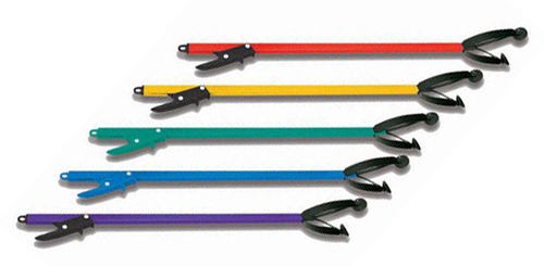 23 * Lightest reacher in the world * Weighs 4.5 oz (58 g) * Smallest handle grip * Flexible rubber cups and wide jaw safely grip small and large items up to 2 pounds * Useful for small or arthritic hands and those recovering from hip or knee surgery * Handy hook and loop hang tab included * No hooks holes or tools required - hang it anywhere...refrigerator washing machine desk wall even on glass or tile * Keep a Rainbow Reacher© handy in your kitchen laundry office or workshop * Use indoors-outdoors upstairs-downstairs home-office gifts for kids-friends *