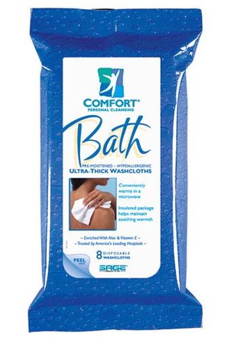 Pk/8 * Microwaveable to retain warmth * Eliminates soaps and lotions * Premoistened with Vitamin E * Contains 8ea heavyweight washcloths *