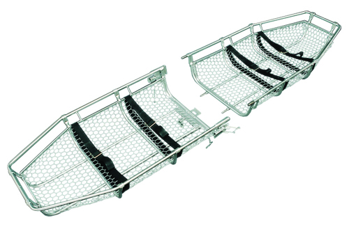 Designed to rescue injured persons from locations where lengthy foot travel is mandatory * The stretcher breaks into two halves which can be back-packed to the point of rescue and assembled in seconds * It can be secured to a standard back-pack for carrying * Three positive lock clamps secure two halves together * Four 60 web straps are standard * Stores in space 44 x 12 x 24 * Weight: 34 Ibs * Can ship via UPS *