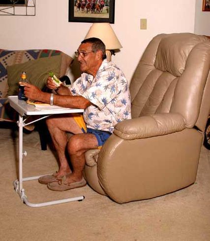 4 Table top angles * Lightweight (Plastic top metal bottom) - Only 6 Lbs! * X-L table top: 15.5 x 20 * No tools required * Slides right up to your body for ease of use * Adjusts to different heights: 22 to 28 tall *
